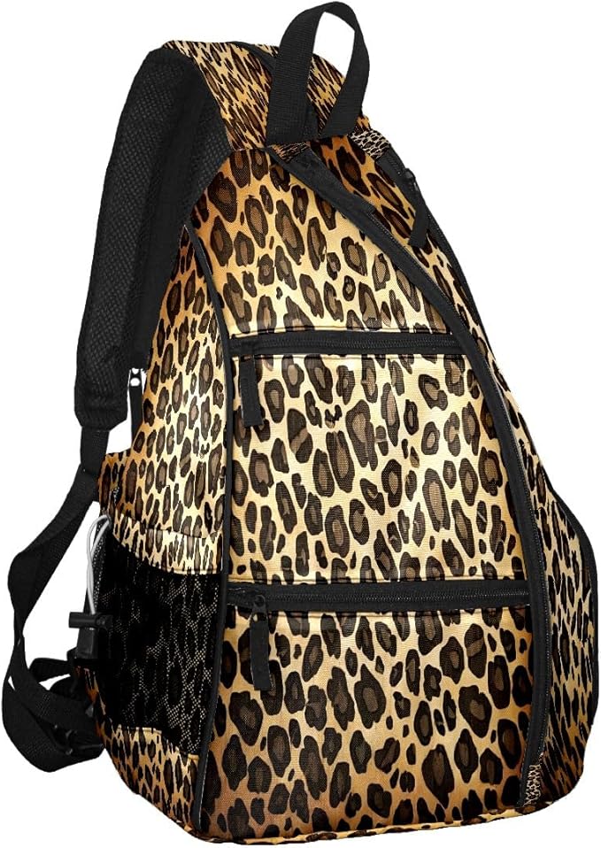 Brown Leopard Print Premium Nylon Pickleball Backpack, 3-in-1 Convertible Shoulder Crossbody Sling Bag for Women Men, Lightweight Bag Fits 2-4 Pickleball Paddles & Tennis Sports Gear
