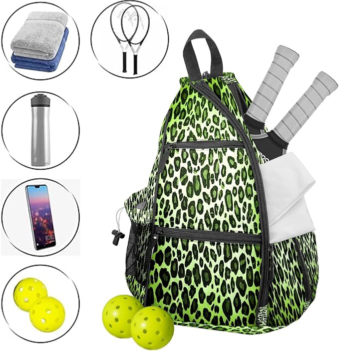 Brown Leopard Print Premium Nylon Pickleball Backpack, 3-in-1 Convertible Shoulder Crossbody Sling Bag for Women Men, Lightweight Bag Fits 2-4 Pickleball Paddles & Tennis Sports Gear