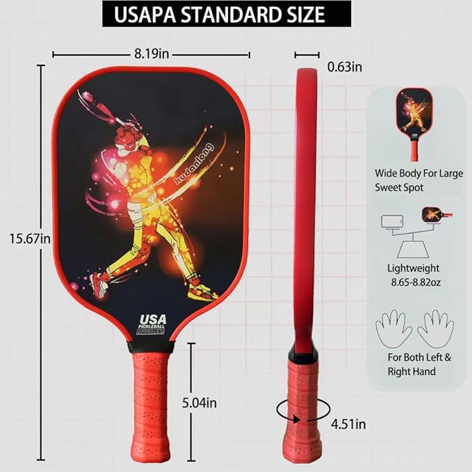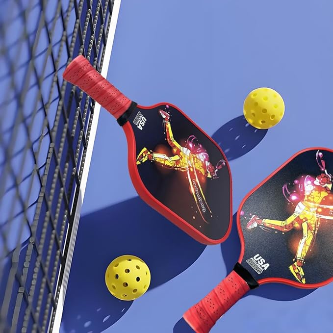 - Premium Pickleball Paddles for Superior Control:Crafted with a lightweight honeycomb core and a textured Hybrid Carbon-Glass Fiber, our pickleball rackets deliver exceptional ball spin, precise control, and comfortable grip, suitable for both casual games and competitive matches