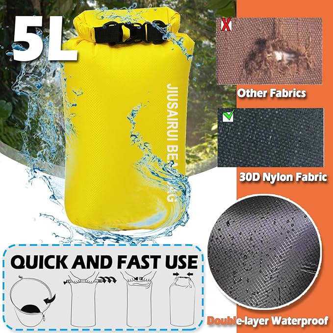 • 【Ultralight & Compact – Just 7.8oz】The Lightweight waterproof bag and 2*10M Ropes and 2*carabiners with Stone bag weighs only 7.8 oz (approximately 220g), about the same asan apple. Its design also makes it extremely Portable, shrinking down to the size of just half your palm. When not in use, you can easily mount it on your backpack with the carabiners.