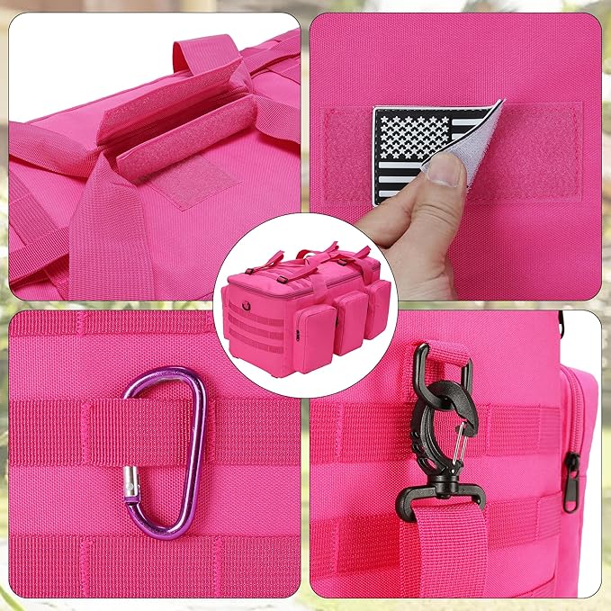 - 【Molle Modular Design】Heavy duty duffel bag with Molle webbing system on front and top, which designed for the modular attachments, making this tactical duffle bag special, and can attach extra tactical pouches or gears, such as kettle, walkie-talkie, first-aid pouch and so on. Flag personalise patches can be removed, you also paste other patches.