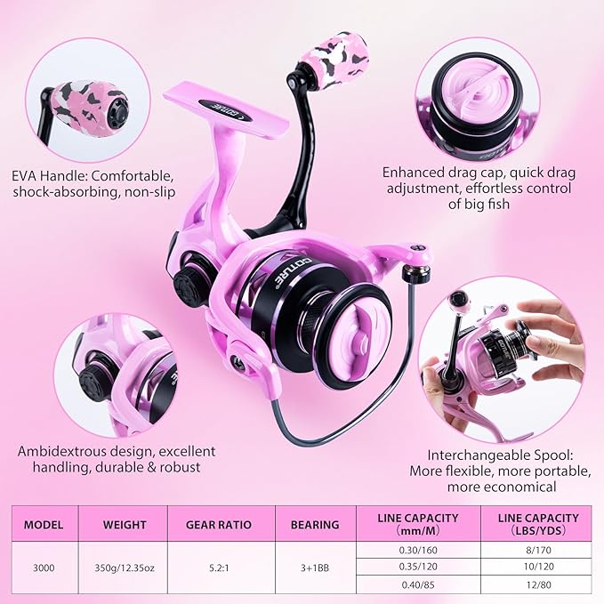 - 【ELEGANT PINK EDITION & PRO PERFORMANCE】 Unlike generic "toy-like" pink fishing sets, our Pink Edition combines a stunning aesthetic with 24T carbon fiber matrix technology. This ensures the rod is not only visually striking but also incredibly lightweight and sensitive. Perfect for women anglers who refuse to sacrifice high-end performance for style, providing the ideal balance of strength to handle energetic Bass or Trout in both saltwater and freshwater.