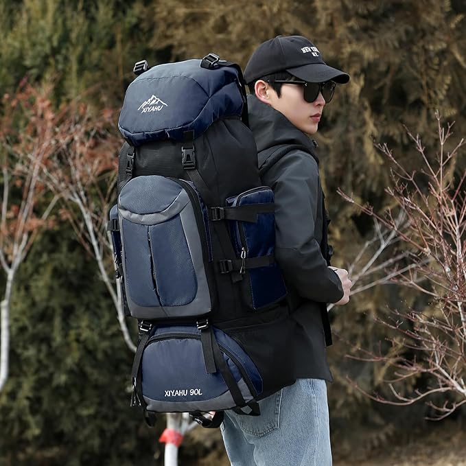 - 【90L Large Capacity Backpack】This outdoor backpack features a generous 90L capacity (approximate dimensions: 40*25*85cm / 15*9*33 inches), offering ample space for all your multi-day outdoor gears.