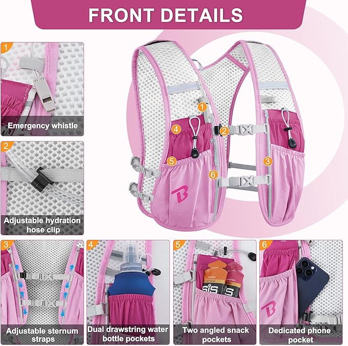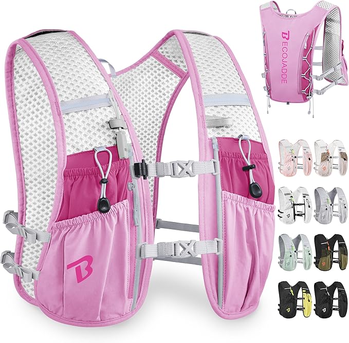 BECOJADDE Running Vest Hydration Backpack for Men Women, 5L Lightweight Running Backpack Hydration Pack for Marathon, Trail, Cycling, Hiking, Jogging