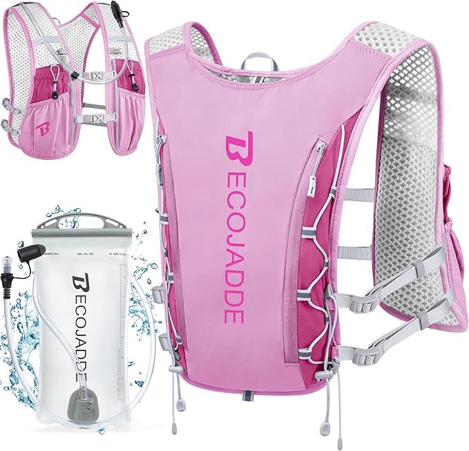 BECOJADDE Running Vest Hydration Backpack for Men Women, 5L Lightweight Running Backpack Hydration Pack for Marathon, Trail, Cycling, Hiking, Jogging