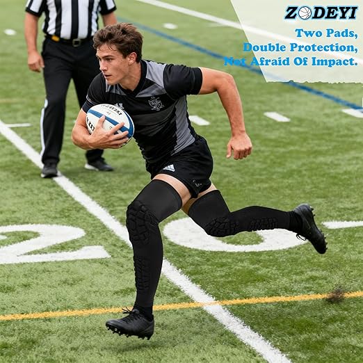 ZODEYI Wrestling Knee Pads Compression Leg Sleeve with Knee Pad and Calf Pad, 1 Pair Knee Sleeve with Shin Guards Shin Pads for Football, Baseball, Rugby, Lacrosse (2, Upgrade Black, XX-Large)