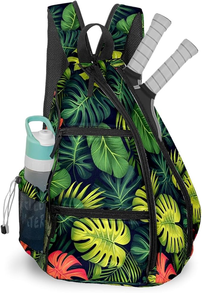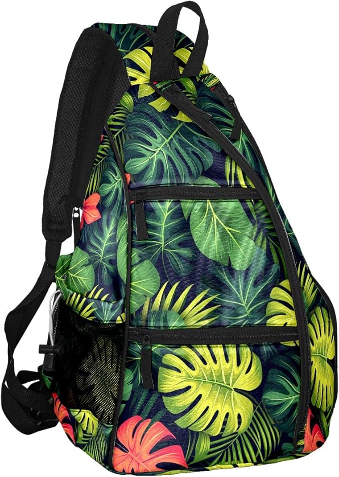 Pickleball Bag Tropical Leaves Pickle Ball Backpack for Women Men Premium Lightweight Crossbody Sling Bag Sports Backpack for Pickleball Paddle Tennis