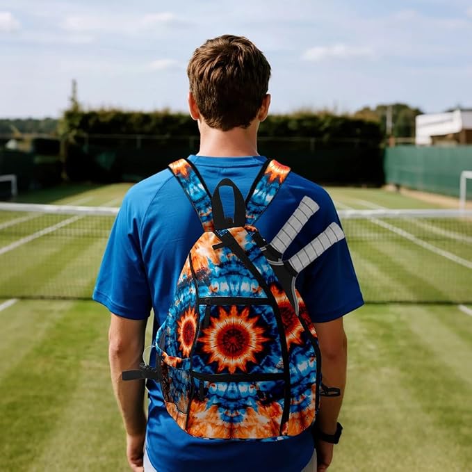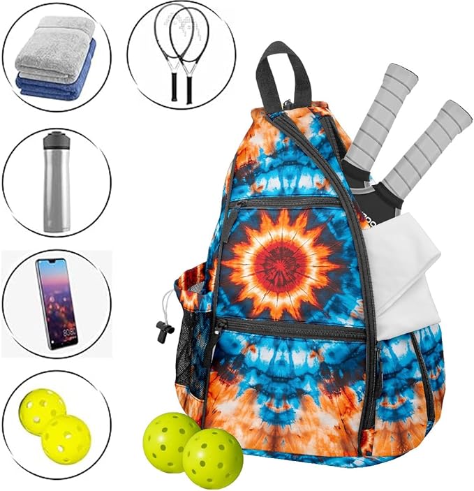 Pickleball Bag Blue Orange Tie Dye Pickle Ball Backpack for Women Men Premium Lightweight Crossbody Sling Bag Sports Backpack for Pickleball Paddle Tennis