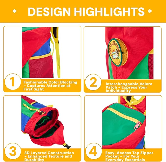 - 【Head-Turning Style & Personal Flair】Express Your Journey Break away from boring bags. Our high-saturation color-block design adds a retro-chic vibe to every outfit. The interchangeable velcro patch lets you customize your look, making this collapsible backpack uniquely yours. Wherever you roam, carry your style statement with confidence.