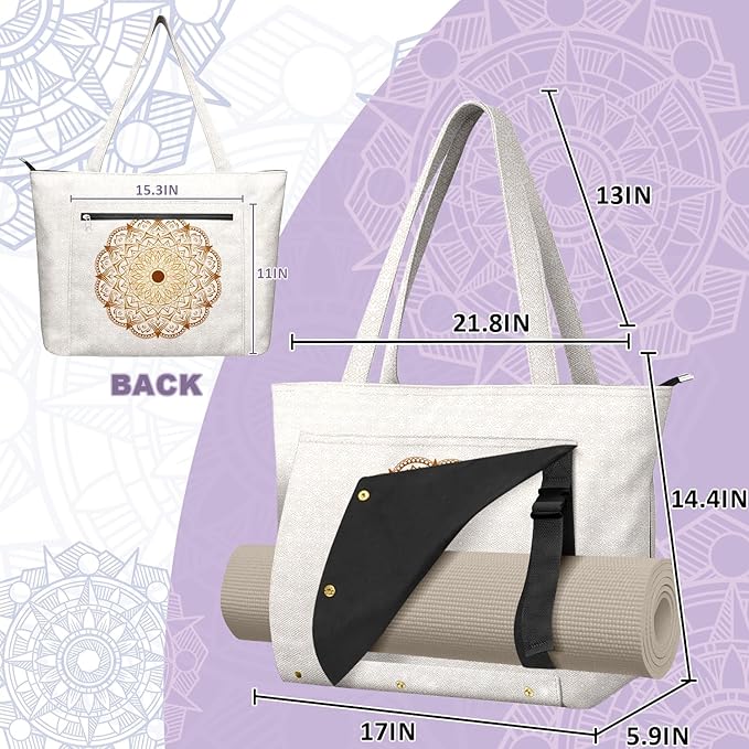 Adalore Women's Yoga Bag with Yoga Mat Carrier - Large Mat Pocket Fitness Tote for Pilates, Gym, Travel, Office & Beach
