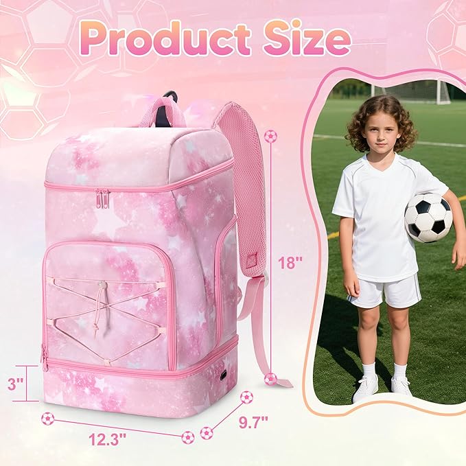 Soccer Backpack for Girls with Separate Ball Pocket and Shoe Compartment, Sports Bags for Soccer, Basketball, Volleyball