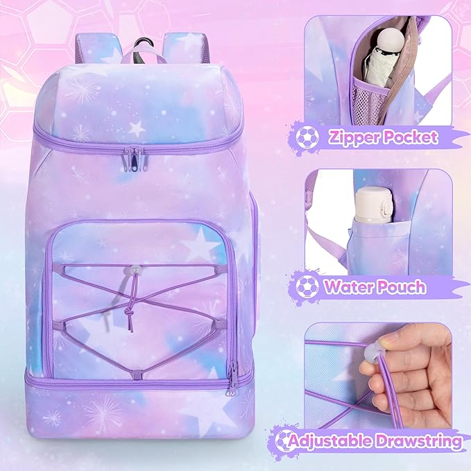 Soccer Backpack for Girls with Separate Ball Pocket and Shoe Compartment, Sports Bags for Soccer, Basketball, Volleyball