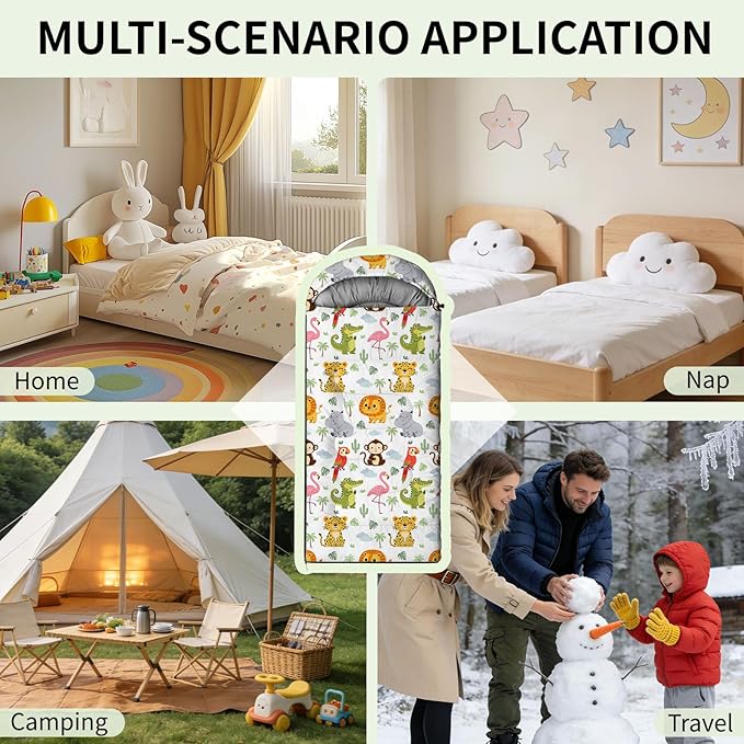 - Product Design: This sleeping bag is made of ultra-lightweight material with smooth, flowing zippers, excellent breathability, and colorfastness. The animal pattern design ensures vibrant and long-lasting colors. Suitable for spring, summer, autumn, and cool weather, it provides superior warmth for your camping trips.