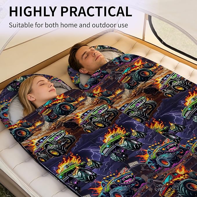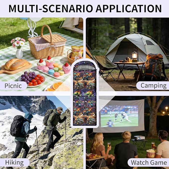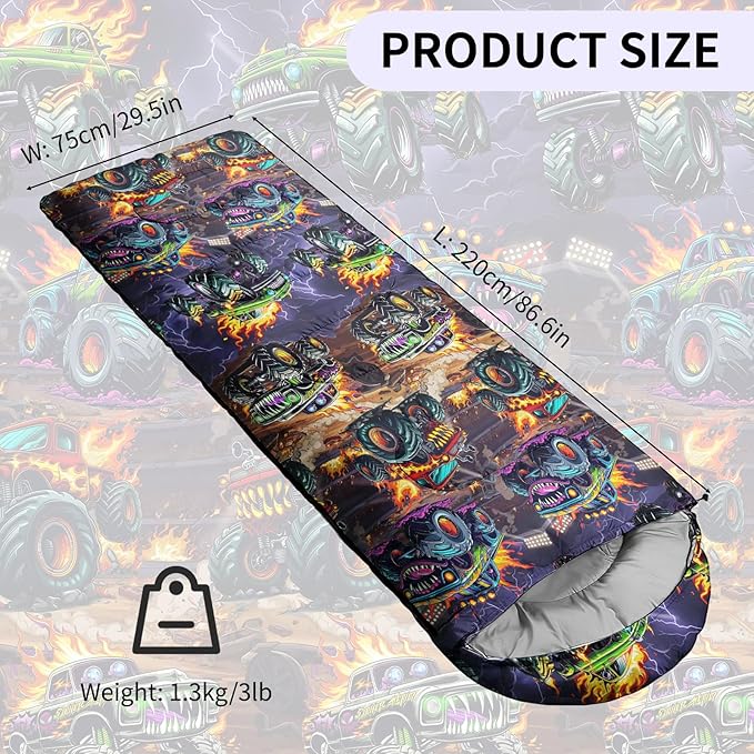 - Product Design: This sleeping bag is made of ultra-lightweight material with smooth, flowing zippers, excellent breathability, and colorfastness. The car pattern design ensures vibrant and long-lasting colors. Suitable for spring, summer, autumn, and cool weather, it provides superior warmth for your camping trips.