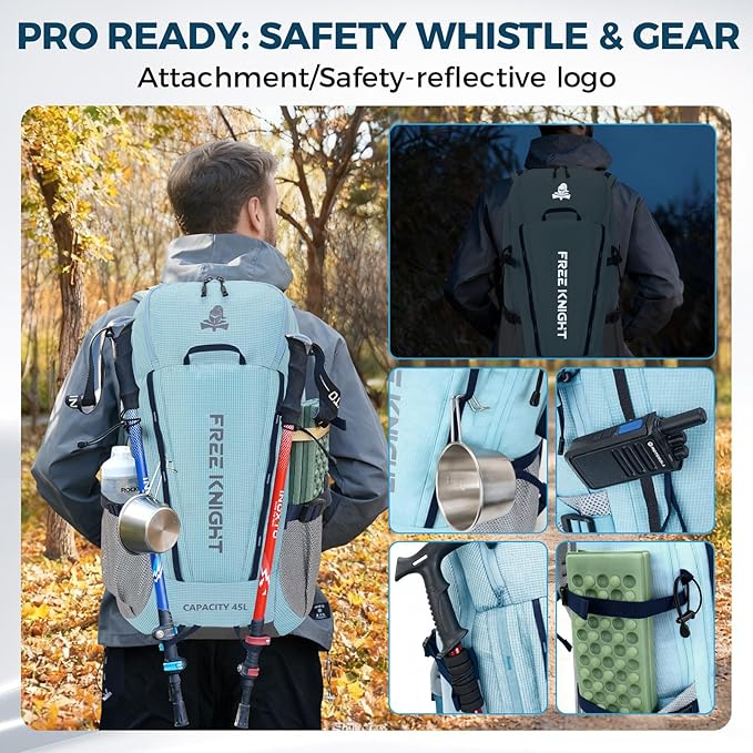 - PORTABLE:Perfect for traveling, hiking, cycling,camping and other outdoor activities.Reflective stripes making it easier to identify at night, making it safe to travel.And it meets size requirements for most airlines, enough room for 3 or 4 days trips.