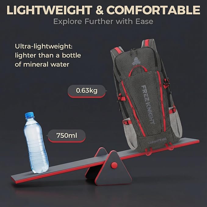 - Multi Compartment :Generous main compartments and multiple pockets allow you to keep all of your gear secure and organized.The spacious main compartment holds sleepingbag, clothes, or other everyday essentials. With one Interior Pouch for water bladder.It also has a front pocket with a zipper. The elastic cord is designed to store items that need to be easily accessible. In addition, it has two side pockets for your water bottle or umbrella.