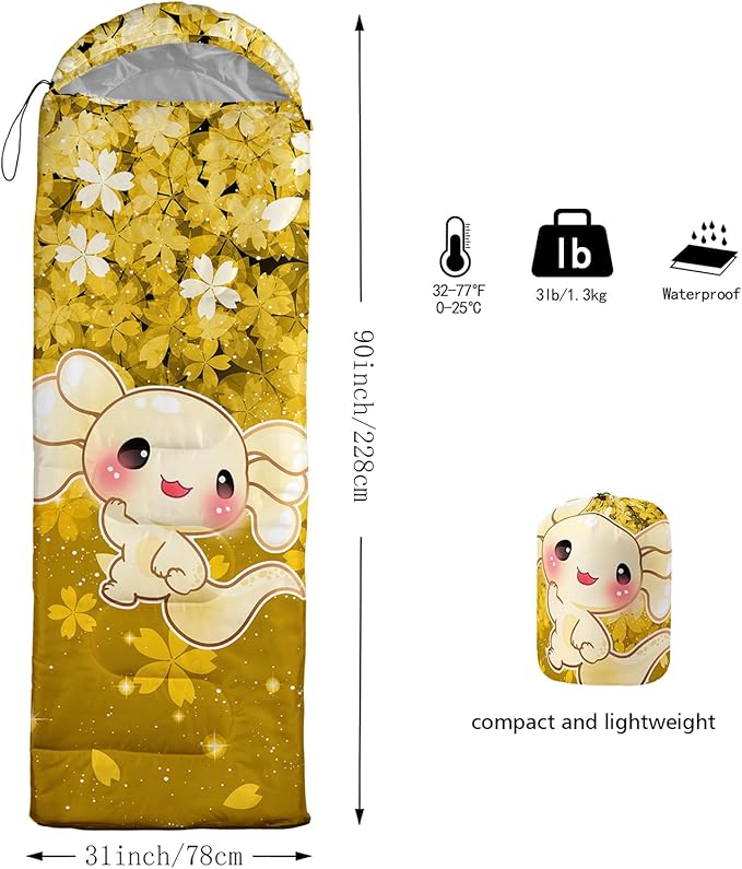 - 【FITS FOR 3 SEASONS】: SIZE - 31 by 90 inches (W x D). Our sleeping bag can be used in 3 seasons with a design temperature of 32℉-77℉(0℃-25℃). These bags also have a weather resistant waterproof design to keep you warm and prevent you from any dampness.