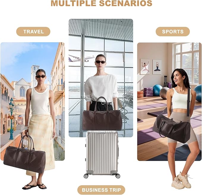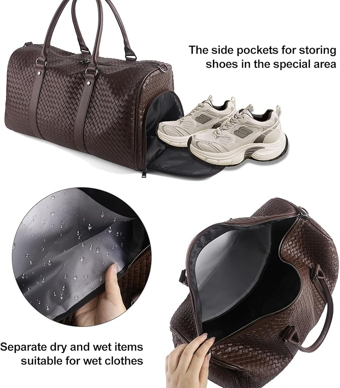 - Ultimate Adaptable Companion:More than just a duffel, this is your intelligently designed solution for life in motion. Crafted from premium water-resistant woven leather, it effortlessly transitions between roles: your sleek business weekender, your organized gym companion (featuring a dedicated ventilated shoe compartment), your reliable overnight bag, and even your durable camping gear hauler.