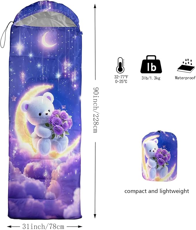 - 【Fits for 3 Seasons】: Size - 31 by 90 inches (W x D). Our sleeping bag can be used in 3 seasons with a design temperature of 32℉-77℉(0℃-25℃). These bags also have a weather resistant waterproof design to keep you warm and prevent you from any dampness.