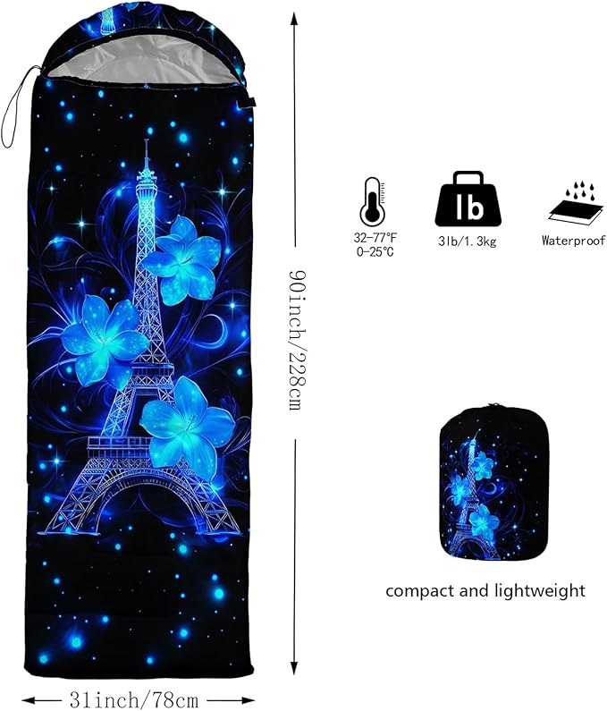 - 【Fits for 3 Seasons】: Size - 31 by 90 inches (W x D). Our sleeping bag can be used in 3 seasons with a design temperature of 32℉-77℉(0℃-25℃). These bags also have a weather resistant waterproof design to keep you warm and prevent you from any dampness.