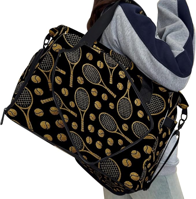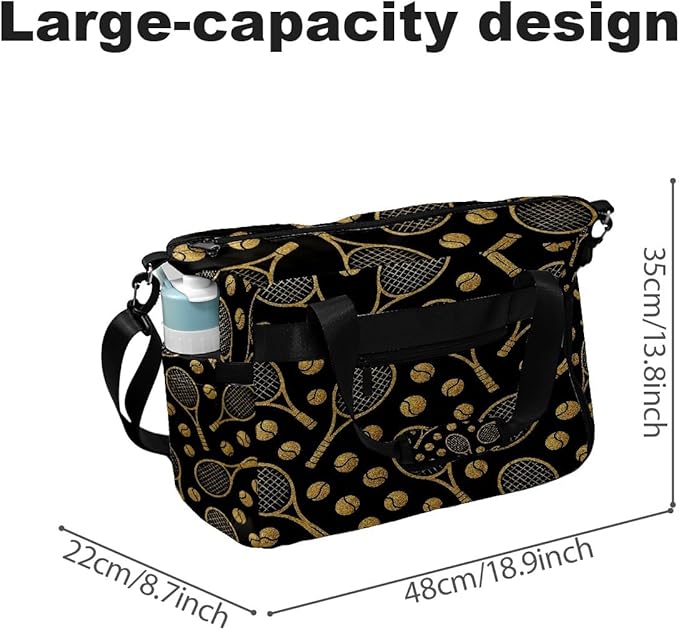 Luxury Racket Black Gym Bag for Women & Tennis Bag, Large Sports Duffel Bag Waterproof with Ventilated Shoe Compartment & Front Racket Sleeve, Lightweight Travel Weekender Overnight Bag